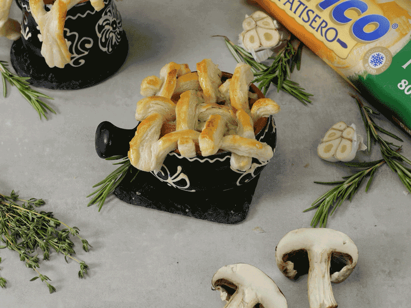 - Pune deasupra fiecărui vas, o bucată de model foietaj.