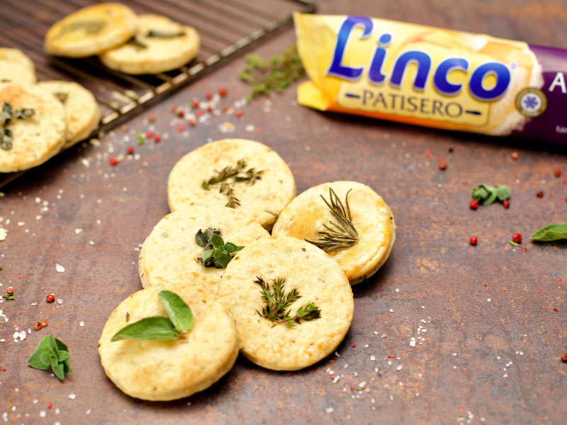 Ai nevoie de:1 aluat fraged simplu Linco PATISERO, 50 g parmezan ras, 2 linguri cu rozmarin tocat foarte mărunt, 6 crenguțe de salvie, 4 crenguțe de rozmarin, 4 crenguțe de cimbrișor, 1 ou.