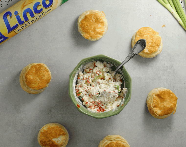 Ai nevoie de: 500g aluat fraged simplu, 100g somon fume, câte un sfert de ardei…
