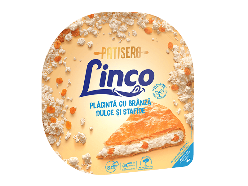 Preparată după o rețetă tradițională românească, plăcinta cu brânză dulce și stafide de la Linco Patisero este o alegere minunată pentru un desert gustos.