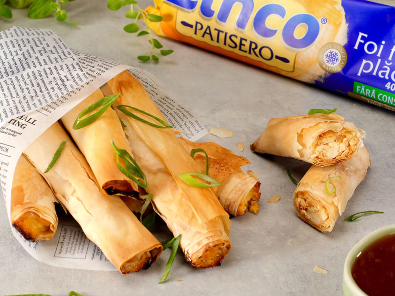 - Unge fiecare rulou astfel format cu puțin ulei și coace la 190 de grade, 20-25 de minute.