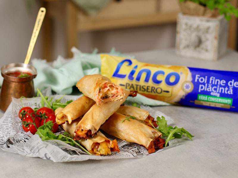 Ai nevoie de: 1 pachet foi de plăcintă Linco PATISERO, 100 ml ulei vegetal, 650 g urdă, 2 ouă, 4 linguri cu sos dulce picant