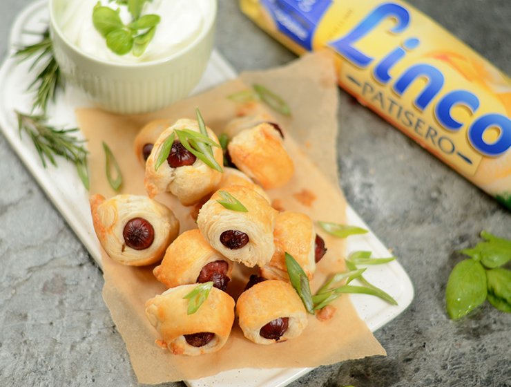 Ai nevoie de: 1 aluat foietaj Linco PATISERO, 1 ou, 400 g cârnăciori de bere,…