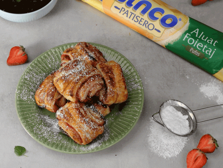 Ai nevoie de: 1 aluat foietaj Linco PATISERO 400 g, 4 linguri cu gem de…