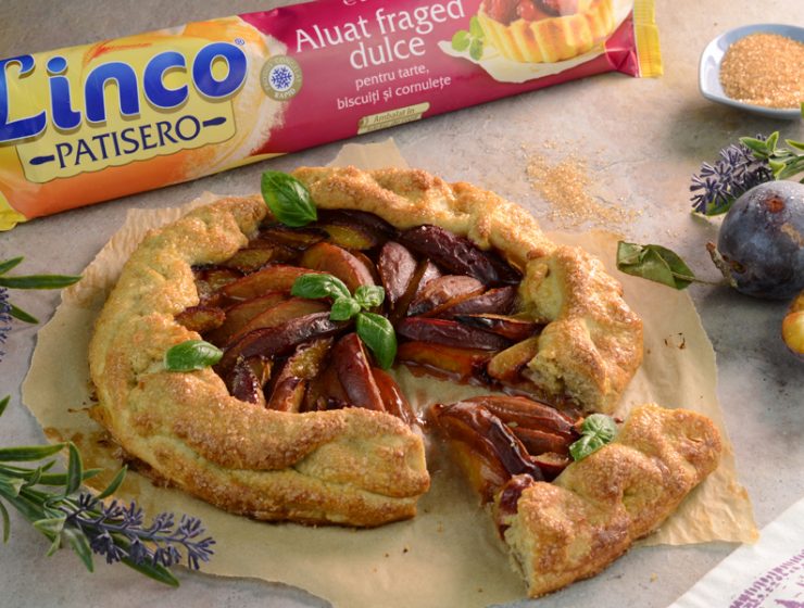 Ai nevoie de: 1 aluat fraged dulce Linco PATISERO, 6 prune mari, 3 linguri cu…