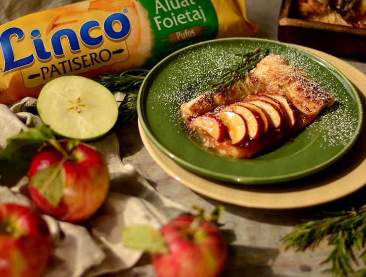 Ai nevoie de: 1 pachet foietaj Linco PATISERO 800 g, 7-8 mere mici, 1 borcan…