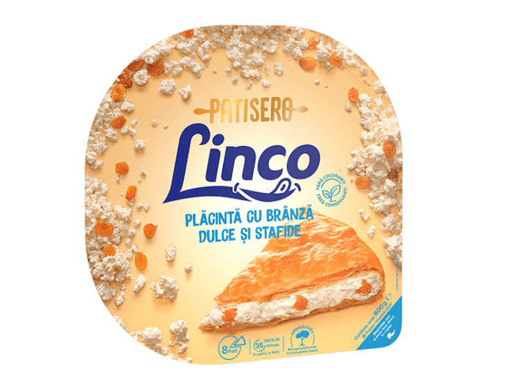 Preparată după o rețetă tradițională românească, plăcinta cu brânză dulce și stafide de la Linco…