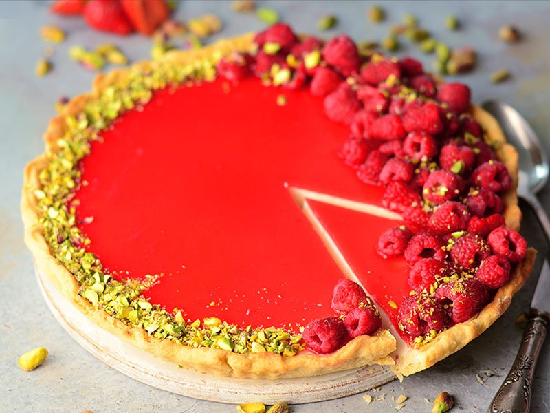 7. Decorează cu zmeura proaspătă și fistic mărunțit.